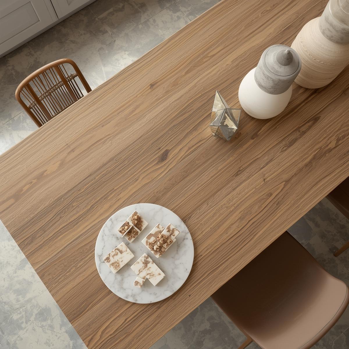 Le stratifié séduit par son large choix de décors et son excellent rapport qualité prix. Sa durabilité dépend fortement de la qualité des finitions, du chant et du traitement hydrofuge.