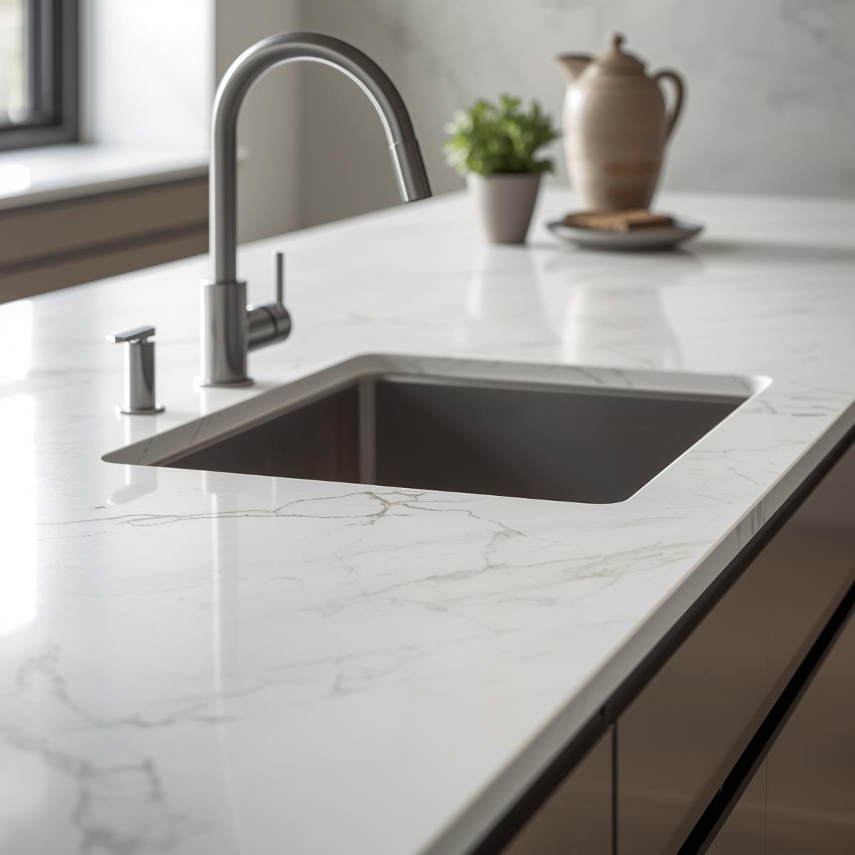 La céramique et le quartz sont des matériaux fabriqués, conçus pour offrir une grande régularité esthétique et des performances élevées. Non poreux, ils n’absorbent ni les tâches, ni l’humidité, ce qui les rend particulièrement hygiénique et naturellement antibactériens. La céramique offre une très haute résistance à la chaleur, tandis que le quartz la supporte moins. Leur prix plus élevé est justifié par leur longévité.