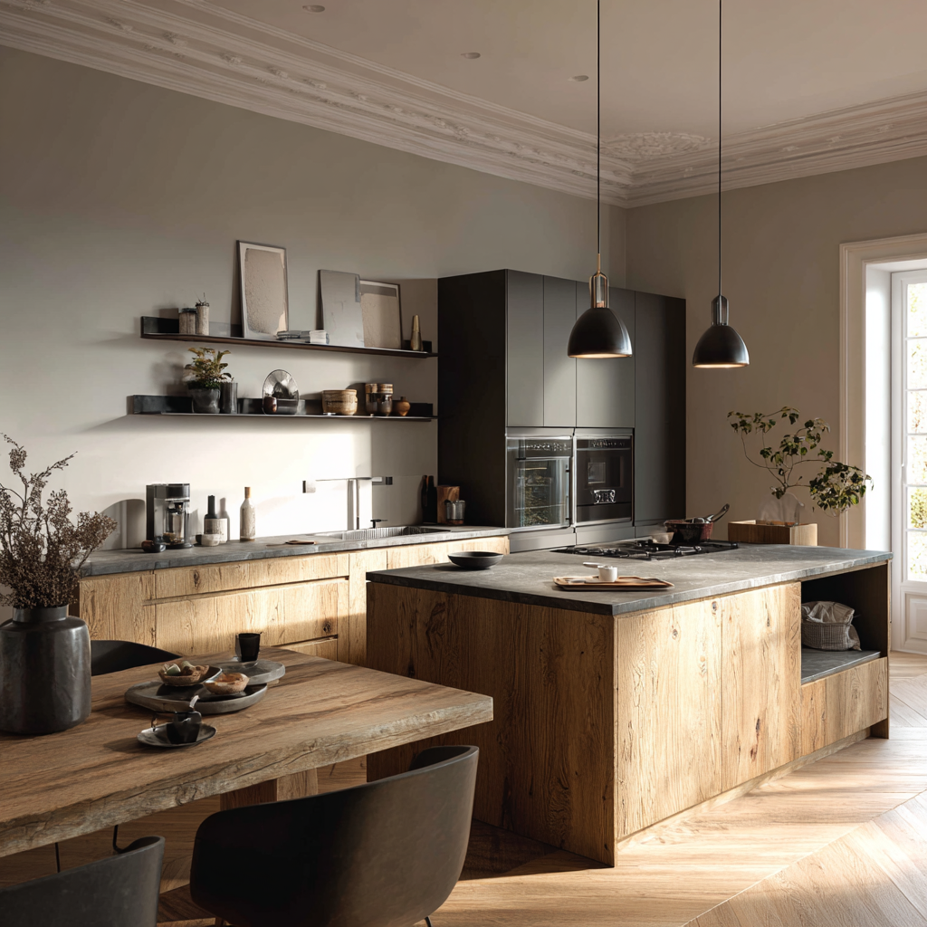 La cuisine naturelle privilégie les teintes douces et de matériaux naturels pour créer une ambiance apaisante. Elle s’intègre harmonieusement dans des intérieurs lumineux et épurés. Ce style offre un équilibre entre esthétique, confort, et simplicité.