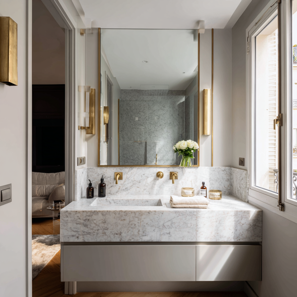 Le choix des matériaux est essentiel dans une salle de bain. Nous sélectionnons des solutions fiables et faciles d’entretien, adaptées à un usage quotidien et aux contraintes de la pièce.